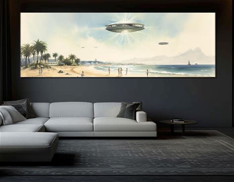 Retro UFO Wall Art Alien Abduction Art Alien Print UFO Horizontal Ufo Poster Sci Fi Print Flying Saucer Poster Futuristic 1960S Art Print