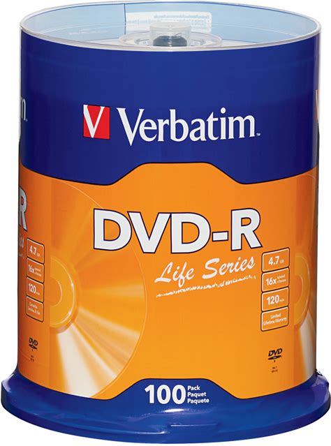 Verbatim DVD-R Blank Discs AZO Dye 4.7GB 16X Recordable Disc - 100 Pack Spindle Frustration Free Packaging