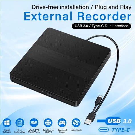 USB 3.0 USB C External CD/DVD RW Drive Read Burner Portable DVD Player Optical Drives For PC Laptops